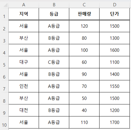 예를 들어, “서울 지역의 매출 합계”나 “A등급 고객의 평균 구매액”처럼 말이죠.