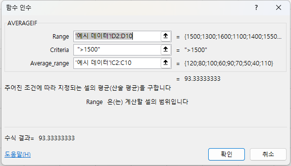 - 예시: =AVERAGEIF(D2:D10, ">100", E2:E10) → D열에서 100 초과인 행의 E열 평균