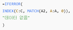 - INDEX 범위와 MATCH 범위 행 수가 다르면 오류 발생